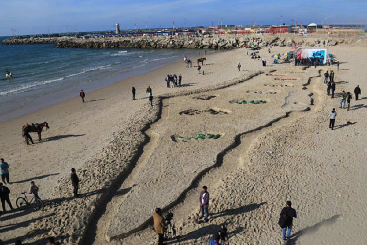 فنانون يخطون خريطة فلسطين التاريخية على شاطئ بحر غزة-صورة أرشيفية