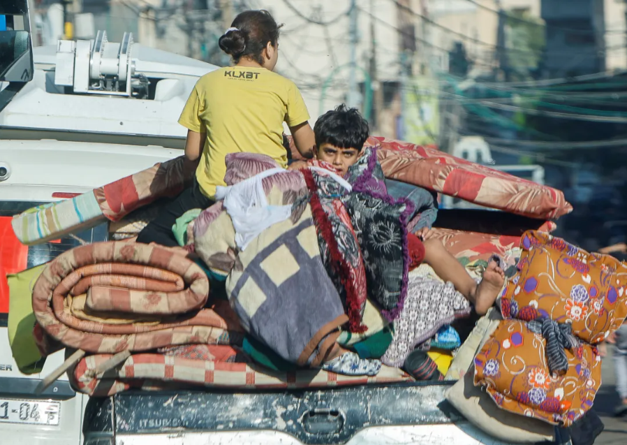 A displaced family seeks safe shelter after being forced out of their home due to relentless Israeli bombing. (Photo: Reuters)