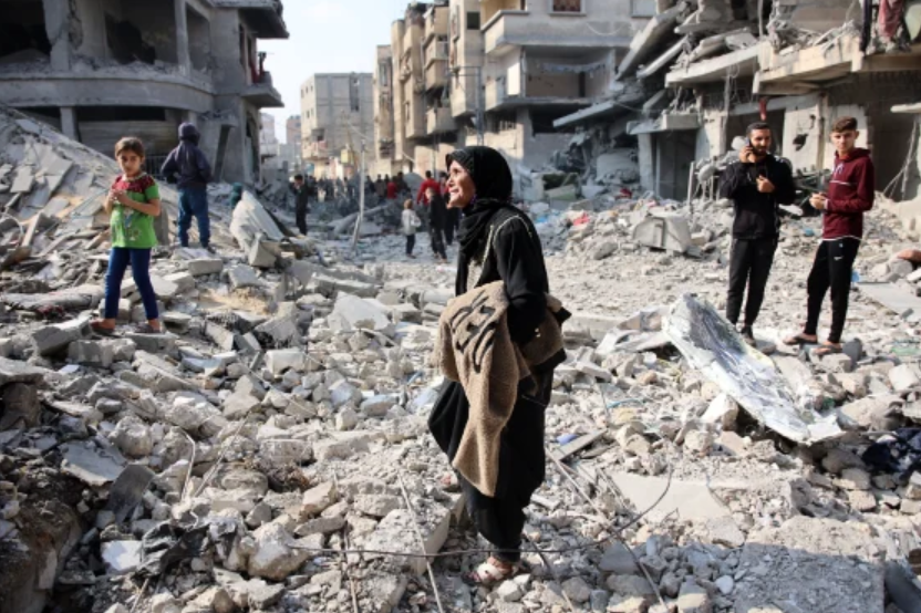 A woman walks amid the destruction of an Israeli strike in Jabaliya in northern Gaza last month. (Photo: AFP via Getty Images)