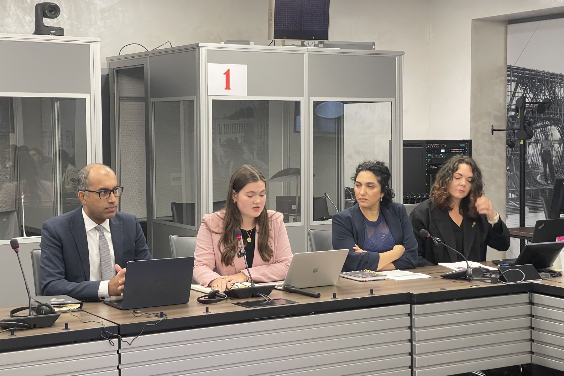 The discussion was moderated by Ms. Astrid Bochnakian of the Geneva International Centre for Justice, who affirmed in her opening remarks that the characterisation of events in Gaza as genocide is no longer limited to NGOs, but has been adopted by official international bodies such as the UN Independent International Commission of Inquiry—placing direct legal responsibility on the international community.